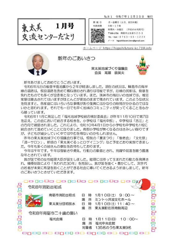 東太美交流センターだより R8.1月号発行